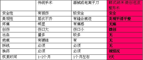 【技术对比】 9项数据遥遥领先,完胜传统包皮手术(见下图)